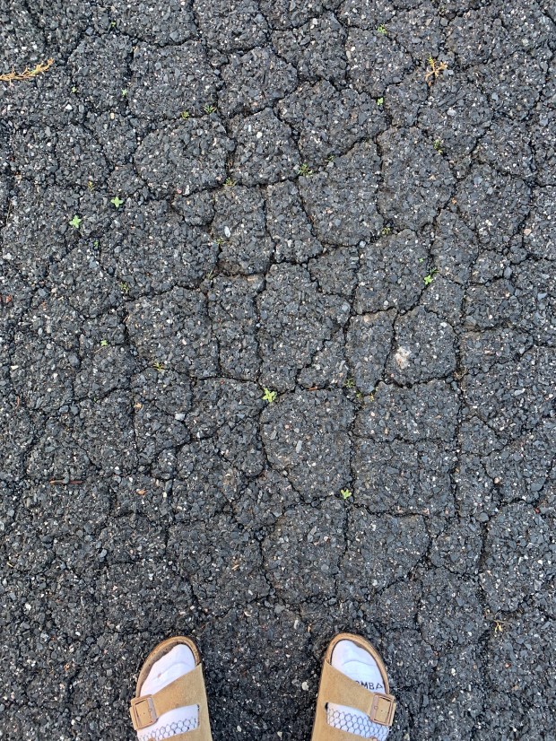 Don’t dismiss this little green plant. Notice how she’s growing defiantly up through a crack in the tar and asphalt. She is resilient. She is stretching. She is alive. She is making it.